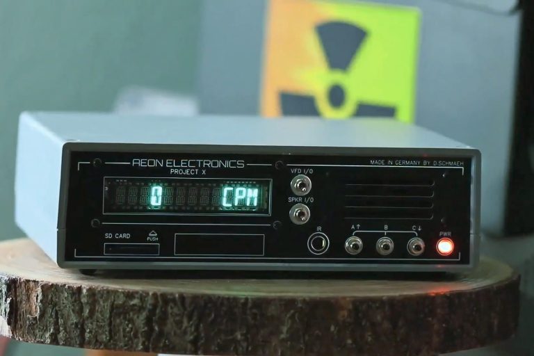 Diese Uhr ist eine Hommage an alte Vakuumfluoreszenzdisplays, wie man sie von früher kennt. Die Uhr kombiniert Retroelemente mit futuritischem Design. Sie kann mit einer externen Sonde sogar Radioaktivität messen! Das Gerät kann auch via handelsüblicher Infrarot-Fernbedienungen gesteuert werden.